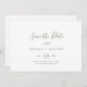 Esta horizontal mínima de folha verde-oliva salva o cartão de data é perfeito para um casamento de boho. A design apresenta uma simples silhueta verde-verde-verde em verde-oliva com o estilo minimalista da boêmia montanhosa.