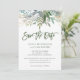 Este casamento elegante e minimalista salva os cartões de data, com a moda verde-aquarela moderna, com a tipografia manuscrita e sua foto pessoal no verso.