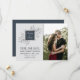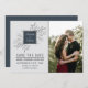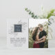 Isto salva a data com charme e simplicidade, com a noiva e os nomes dos noivos centrados sobre uma cama de folhagem delicada, e uma foto da noiva e do noivo. Mude a cor do quadrado no meio para combinar qualquer escolha de cor que tenha para o seu casamento! Entre em contato conosco se quiser ajudar a personalizar este convite.