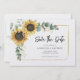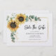 Crie um Sunflower Floral moderno salve o cartão de data com este modelo giro com um belo buquê floral de girassol, estrutura de folha de ouro geométrica, com uma tipografia simples moderna. DICA: Cartões de suíte de casamento iguais, como RSVP, programas de casamento, banners, tapeçarias, etiquetas de presentes, placas e outros guardas de casamento e guloseimas estão disponíveis na coleção abaixo com este design que temos curado para sua conveniência