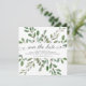 Este convite de save the date de casamento moderno apresenta uma moldura de folhas verdes em aquarela abundantes e algumas pequenas frutas em um fundo branco limpo. O verso do convite também diz "Salve a Data" em caligrafia elegante. Perfeito para o seu casamento elegante e minimalista que está por vir.