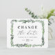 folhas aquarela floral mudar a data cartão. Com belas folhas de aquarela e tipo moderno e ousado, este convite para mudar a data está na moda e é perfeito para qualquer época. Parte de um conjunto de casamento