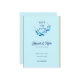 Folhas azuis modernas e elegantes numa moldura geométrica dourada com listras douradas de ambos os lados. O fundo é um azul bebê