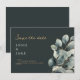 Esta elegante placa "Salvar a Data" apresenta um design impressionante com folhas de eucalipto em tons verdes suaves em um fundo verde escuro, realçado com detalhes dourados que acrescentam um toque luxuoso. O guião dourado manuscrito no topo destaca lindamente a mensagem "Salvar a data", enquanto os nomes e os detalhes do evento do casal são exibidos de forma clara em uma fonte serif moderna. Perfeito para casais que buscam uma sofisticada e inspirada na natureza para sua papelaria de casamento, este cartão dá o tom para uma celebração de eterno. A design moderna combina-se facilmente com uma variedade de temas de casamento, incluindo estilos rústicos, botânicos ou contemporâneos, garantindo que ela complementa qualquer evento e, ao mesmo tempo, deixe uma impressão duradoura.