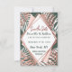 Folhas cor-de-rosa, verde, branca e rosa de ouro, imprimidas a preto, de verão, tropicais e elegantes palmeiras, num fundo verde plantado com recortes de diamantes de rosa impressos geométricos, cartão de casamento "Salve-a-Data". Este design clássico e sofisticado é perfeito para o casal de competição de tendências e na moda. Personalize com sua própria mensagem na frente, assim como um monograma personalizado inicial no verso. Todas as impressão de fotos.