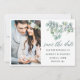 Script De Caligrafia Moderna, Elegante Folha De Eucalipto Botânica De Aquarela, Greenerescência Salva O Cartão com fotos De Anúncio Do Noivado De Data