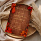 Um design aconchegante e elegante com um fundo de madeira natural rodeado por folhas de outono ricas e sotaques sazonais quentes. A composição combina texturas rústicas com tipografia dourada, criando uma estética encantadora e convidativa. Ideal para anunciar um dia especial com uma atmosfera natural, atemporal e quente inspirada no outono.