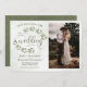 Este belo casamento Salve o Cartão de Data contém uma azeitona rústica e um design verde de sábio com inscrições modernas e imagens de folhas de aquarela pintadas manualmente, vinhas, verde ou folhagem. Há espaço para sua foto, o nome do casal e a localização do casamento. Elegante, na moda e chic, este cartão é uma forma excelente de deixar seus amigos e família saberem salvar a data do seu dia especial.