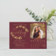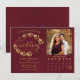 Este lindo cartão de "Save the Date" de casamento apresenta um design nas cores burgundy e dourado com letras em tipo moderno e ramalhetes de folhas, videiras ou folhagens pintadas à mão em aquarela. Há espaço para a sua foto, o nome do casal e local do casamento, e um calendário personalizado onde você pode marcar o dia especial com um coração. Uma maneira maravilhosa de começar a jornada do casamento e deixar que todos saibam para marcar a data em seus calendários! Também disponível como download digital para que você possa enviá-lo por mensagem de texto ou e-mail, ou incluí-lo no site do seu casamento. Perfeito para uma cerimônia de outono.