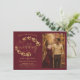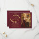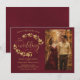 Este lindo cartão de Save the Date de casamento apresenta um design rústico nas cores burgundy e dourado com letras em script moderno e ramos de folhas, videiras ou folhagens pintadas à mão em aquarela dourada. Há espaço para sua foto, o nome do casal e o local do casamento. Elegante, sofisticado e chic, este cartão é uma ótima maneira de informar aos amigos e familiares que guardem a data do seu dia especial.