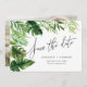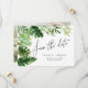 Linda foto de folhas de aquarela tropical moderna para salvar a data. Texto com letra cursiva bonita. Parte de uma coleção de celebração de casamento de verão.