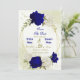 Bonito, salve o cartão de data com flores azuis e brancas reais e folhas verdes em uma elegante estrutura geométrica dourada Os detalhes da brilho dourada são simulados. PARA MAIS PRODUTOS CORRESPONDENTES, clique na coleção acima ou entre em contato comigo