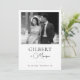 Surpreenda seus entes queridos com este elegante convite clássico, com tipografia moderna, na moda caligrafia, sua foto personalizada em preto e branco e texto editável. Adicione facilmente seus próprios detalhes clicando na opção "personalizar".