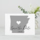 Forma personalizada do mapa de cinzas do Arkansas com uma salva na design de data para as pessoas se casarem em um local de casamento em Little Rock AR. Os símbolos de texto cardíaco podem ser personalizados e movidos para outros locais. Personalize a cor da forma do estado para corresponder à paleta de cores do casamento. Diga aos seus amigos e familiares a localização do seu casamento com um símbolo de texto cardíaco que você pode mover. Os estilos de letra modernos e elegantes da caligrafia são personalizáveis.