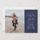 Com uma data em negrito em uma cor azul marinho e muito espaço para texto personalizado com todos os detalhes do seu casamento, este documento de salvamento também tem um lugar para uma foto de noivado vertical solteiro. A parte de trás é uma cor azul-marinho coordenada com listras.