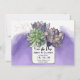 Foto moderna e simples salvam o anúncio de data com suculentos de aquarela em um pote colocado contra fundo de aquarela roxo decorado por pontos de confetti de rosa dourado, perfeito para eventos temáticos de cacto. Sinta-se livre para entrar em contato comigo se precisar de ajuda para personalizar, precisar de mais produtos ou tiver uma solicitação de cor personalizada. **modelos coordenadas para este pacote de casamento podem ser encontradas na coleção mostrando abaixo ou colando este url no seu navegador: https://www.zazzle.com/collections/succulent_cactus_wedding-119744651622617721?rf=238919973384052768&CMPN=share_dclit&lang=en&social=true