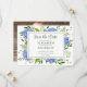 Esta hidrangea azul foto salva o cartão de data é moderna e caprichosa. A frente tem lindos, sábios, aquarelas com várias abas verdes e hidrelétricas azuis e a parte de trás tem uma foto do casal feliz. É perfeito para um casamento de primavera ou verão e é justo deixar seus amigos e família saberem quando e onde você planeja se casar. Em segundos você pode ver como suas cartas serão. Basta selecionar Personalizar este Modelo, carregar uma foto favorita e digitar as informações para ver as suas placas exclusivas e deslumbrantes.