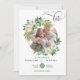 Anuncie seu casamento com esta bela foto Salve o cartão de datilografia com uma elegante estrutura geométrica mostrando sua foto com uma fina cor d'água floral em tons brancos, de mel, de ouro e verdes. De volta em elegante verde-claro, sábio e textura verde-aquosa. O mesmo design também está disponível com a parte traseira na textura de cor amarela do mel.