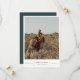 Chic moderno minimalista, salve o cartão com fotos de data. Design, texto de cor verde de caçador e cobertura de cor sólida correspondente, foto do solteiro na frente.