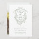 Este casamento achatado salva o cartão de data mostra um clássico cresto verde-floral vitoriano francês vitoriano, com uma foto atrás. Para uma personalização mais avançada deste design, clique no BOTÃO FERRAMENTA DESIGN AZUL acima!