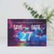 Para o casal cuja história de amor está escrita entre as estrelas...um casamento com a galáxia... exceto os cartões de data... que seguramente vão chamar a atenção de todos! Os detalhes do texto são personalizáveis e estão sobre um fundo de espaço em roxo, rosa, azul, amarelo e branco