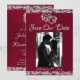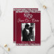 Este design romântico apresenta um elegante fundo burgundy com bordas cintilantes, espaço para a foto do casal e dois corações prateados entrelaçados com a data do evento em letra cursiva elegante na frente. A parte traseira tem um espaço para monograma, mais informações e local para o seu site. Também disponível com diferentes cores de fundo para as cores do tema do seu casamento. (O brilho é simulado na arte). Projetado para combinar com a Coleção de Casamentos "Two Shall Become One - Hearts, Doves & Glitter". Para alterar os detalhes, clique em «Personalizar». Substitua a foto pela sua. Para mover o texto ou alterar o tamanho, a fonte ou a cor, clique em «Clique para personalizar ainda mais».