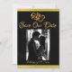 Esta design romântica apresenta um elegante fundo preto com bordas de fita, marcador para fotos de casal, e dois corações vinculados com a data do evento em um roteiro elegante na frente. O verso tem um marcador de posição monograma, mais informações e lugar para o seu site no verso. Disponível em várias cores para seu tema de casamento. (A fita é simulada na trabalho de arte). Concebido para coordenar com a Coleção Caseira "Dois Tornar-se-ão Um - Prateado e Dourado". Para alterar os detalhes, clique em "Personalizar". Para mover o texto ou alterar o tamanho, a fonte ou a cor do texto, clique em "Clique para personalizar mais"