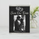 Este design romântico apresenta um elegante fundo preto com bordas de fita, espaço para a foto do casal e dois corações entrelaçados com a data do evento em letra cursiva elegante na frente. A parte traseira tem um espaço para monograma, mais informações e local para o seu site. Disponível em várias cores para o tema do seu casamento. (A fita é simulada na arte). Projetado para combinar com a Coleção de Casamentos "Two Shall Become One - Silver & Gold". Para alterar os detalhes, clique em «Personalizar». Para mover o texto ou alterar o tamanho, a fonte ou a cor do texto, clique em «Clique para personalizar ainda mais»