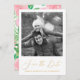 Lindas flores cor-de-rosa-pinceladas, verde-aquarela e caligrafia em ouro tornam esta design de fotos uma forma adorável de compartilhar as boas notícias com amigos e familiares.