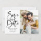 Caligrafia em Pincel de Água Negra Foto para Salvar Nossa Data Card | Anuncie à família e aos amigos a data do seu casamento com este cartão simples de data personalizável. Apresenta caligrafia moderna, escrita com letras pretas à mão. Esta foto de na moda para salvar o cartão de data é perfeita para qualquer época de casamento e tema. Outras cores e itens correspondentes estão disponíveis.