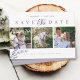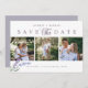 Lavanda impermeável e rústica com colagem de 3 fotos em formato horizontal, tipografia em roxo empoeirado salve o cartão de data.