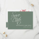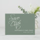Capture a história do seu amor com este cartão de salva a data de foto da montanha em verde sal. O design moderno combina tipografia minimalista com um toque cênico e inspirado na natureza—perfeito para casamentos ao ar livre, rústicos ou de montanha. Personalize com sua foto e detalhes do casamento.