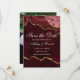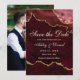 Cartão de Save The Date de Ágata Geodo em Mármore Dourado e Burgundy em Aquarela Moderna e Elegante - Verso com Foto