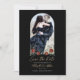 Florais lindos e uma foto de arco fazem com que o cartão Salvar a data se destaque. Perfeito para um gótico ou casamento de Halloween. Veja a coordenação de itens no nosso compro, Encantado Finch.