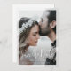 Este simples casamento de fotos em chic salve a data em que a carta achatada tem um design quente e minimalista, emoldurado na frente com uma borda semitransparente que deixa sua foto parcialmente visível. Ele dá a este design único suavidade e sensação de fluxo, assim como um aspecto angular nítido e limpo. Também oferecemos este design com a borda em uma cor sólida sem semirtransparência, assim como versões de fotos de cheio de casal, portanto, verifique nosso compro se você preferir uma dessas imagens. A frente apresenta um moderno animado texto Salvar a Data acima de seus primeiros nomes e data e local do casamento em branco. No verso, definimos o plano de fundo como transparente, de modo que a cor do papel sirva simplesmente como a cor base. Você pode escolher uma cor para o plano de fundo, se preferir. Você também pode editar o texto de acordo com as suas necessidades. Talvez você queira excluir um campo de texto que não precisa ou alterar a cor ou a fonte de algum texto. Escolhemos um tom de cinza para o texto atrás. Use as ferramentas intuitivas de design, sua foto favorita e sua inspiração para fazer com que este casamento de na moda salve a carta de data chata exclusivamente sua!