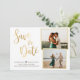 A caligrafia elegante de ouro branco moderno, escrita à mão, duas fotos salvam o cartão de anúncio de data. Design de casamento minimalista apresenta um elegante e cursivo roteiro de caligrafia manuscrito em folha de ouro com texto "Salvar a Data" e duas fotos de casal com quadro em cor branca de fundo. Entre os nomes está uma bela forma cardíaca. Se precisar de ajuda ou itens correspondentes, entre em contato comigo.