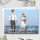 Cartão de Anúncio de Noivado Save The Date com Letra de Caligrafia Moderna para Foto de Casal