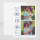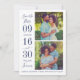 Casamento moderno e na moda guarde os cartões de anúncio de data com duas fotos quadradas de noivado com um design tipográfico que inclui números ousados e elegantes de datas de casamento com um simples monograma dos nomes de noiva e noivo. Acentuado com Forever no texto do script. Esquema de cores azul e branco do marinho clássico.