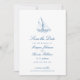 Anuncie seu casamento costeiro em estilo com nossa elegante foto, salve o cartão, com um charmoso veleiro azul e design de ondas. Perfeito para celebrações náuticas, este cartão inclui endereçamento gratuito de envelope para maior conveniência. Ideal para casamentos em estreias como o Clube de praia de Wychmere em Cape Cod, Montauk de Gurney, Belle Mer em Newport, e clubes de iates ao longo da Costa Leste. Projetado pela Concertina Press.