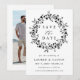 Este cartão de save the date de casamento elegante apresenta uma coroa de silhueta de flores silvestres com sua foto no verso. Para personalização avançada deste design, clique no BOTÃO AZUL DE FERRAMENTA DE DESIGN acima!