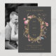 Um casamento elegante e escuro de feto salve o anúncio da data com um quadro em forma de pílula dourada cercado por flores silvestres de aquarela em madrugada com a data do seu casamento no centro em um fundo de cinza escura. Personalize com seus detalhes na fonte dourada. Adicione sua foto ao contrário.