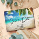 Casamento de praia com águas azuis tropicais, salvo as datas do casamento de destino. Essa data de salvamento pode ser usada para qualquer local de praia de sua escolha, simplesmente mude a redação no modelo para o ajustado de suas necessidades. Personalize com seus nomes, data do casamento e local. Adicione sua foto à parte traseira da placa.