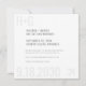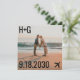 Uma simples foto quadrada moderna salve a data com um tema sutil de viagem para um casamento de destino de praia com nosso design romântico de avião e grande data de casamento e texto de iniciais nas bordas do cartão. A parte de trás tem espaço para o seu site de casamento, e você pode clicar em 'personalizar mais' para editar o layout do texto para incluir mais detalhes para os convidados para que eles possam começar a planejar sua viagem para o seu casamento na praia. Qualquer foto pode ser carregada, e a colocação da foto pode ser editada usando o editor avançado de design, para que você possa ver a foto que quiser para o seu noivado de praia.