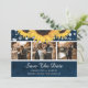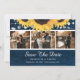 Cartões salve a data personalizados de marinho azul e girassol. Personalize facilmente esta foto rústica, salve a data com suas imagens e detalhes de casamento, incluindo um site de casamento.