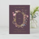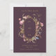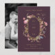 Um rico casamento elegante e escuro do boho salva o anúncio da data com um quadro em forma de pílula dourada rodeado por flores silvestres de aquarela em mauve, com a data do seu casamento no centro de um fundo de beringela. Personalize com seus detalhes na fonte dourada. Adicione sua foto ao contrário.