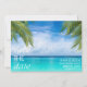Casamento de praia em águas tropicais, salvo a data do casamento de destino. Personalize com seus nomes, data do casamento e local e adicione sua foto no verso.