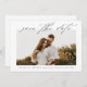 Uma simples e romântica fotografia de casamento paisagística salva a data com belas caligrafias. Clique no botão editar para personalizar este design.