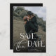 Casamento de tipografia moderna salve o cartão de data com foto de solteiro, data, nomes e script de tipografia em letras negrito de tendência.