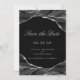 Convide seus convidados para comemorar seu dia especial com este design simples e elegante que mostra sua foto com o moderno roteiro, tons clássicos de preto, branco e cinza agata com veias metálicas de folha prateada. Personalize-o com os seus nomes, data de casamento e local na frente e com a sua fotografia no verso.