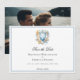 Casamento de fotos com monograma formal e elegante, salve o cartão de data com uma crista azul, duas iniciais personalizadas e modelos de texto totalmente personalizáveis.